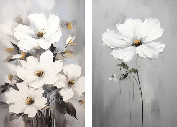 Plagáty Umelecká kompozícia s bielymi kvetmi a textúrovaným povrchom v minimalistickom štýle Nr d00574