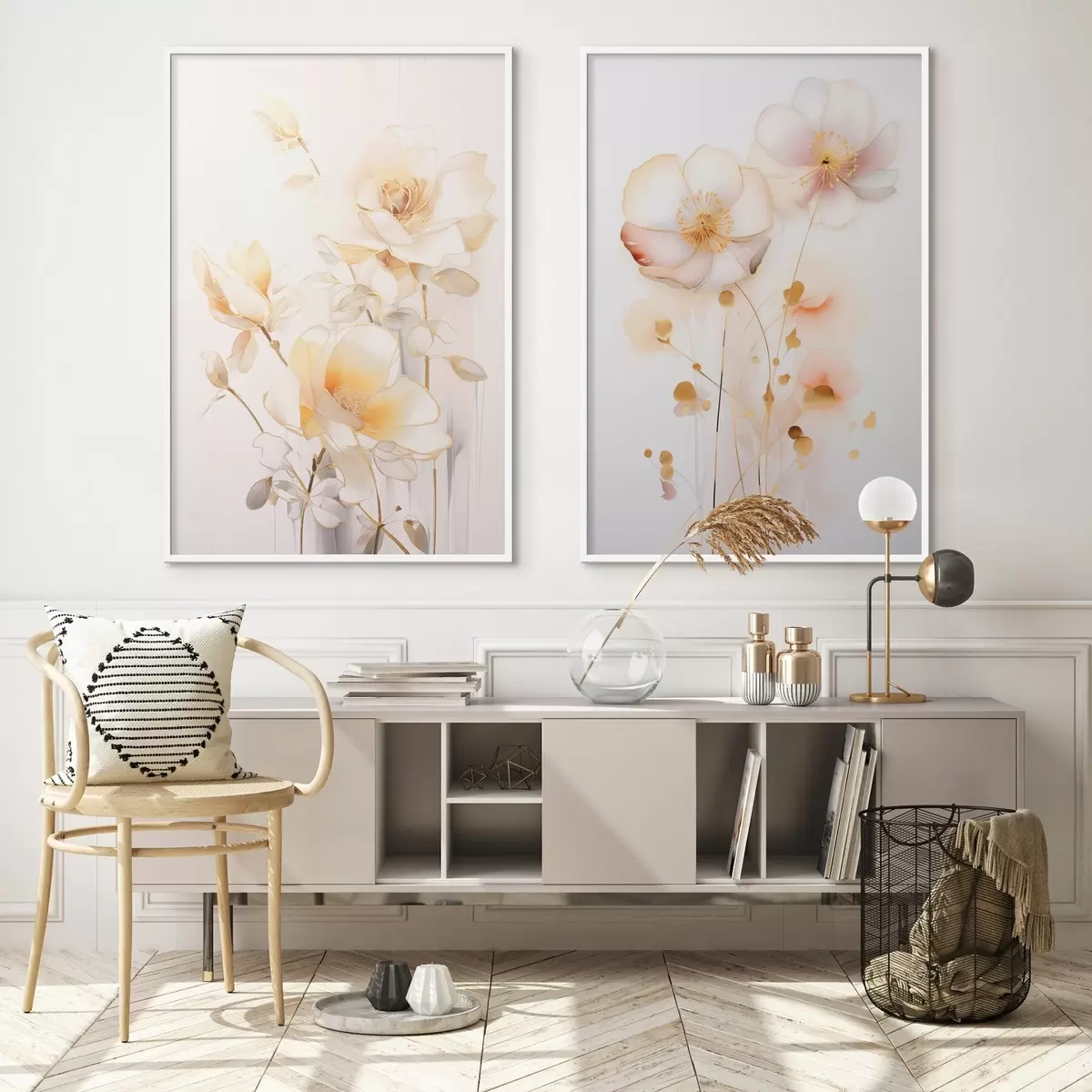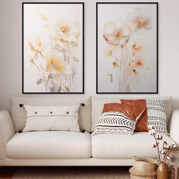 Plagáty Kvetinový duet: jemný diptych v akvarelovom štýle s elegantnými líniami Nr d00577