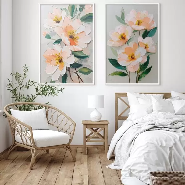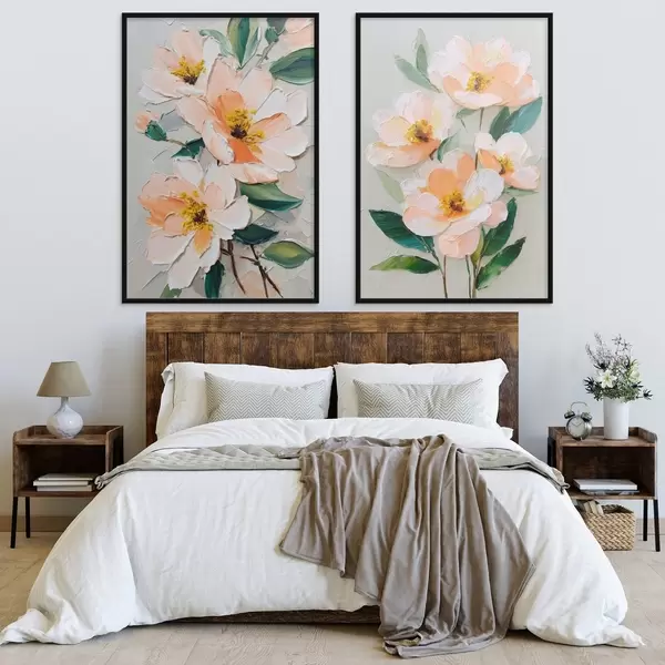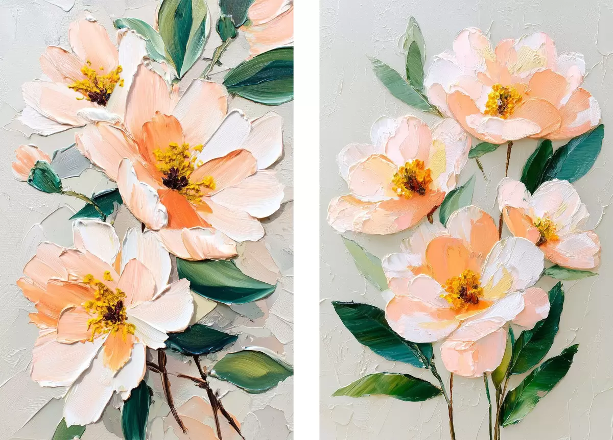 Plagáty Maľba v štýle impasto kombinujúca veľkú kyticu a jednotlivé kvety Nr d00579