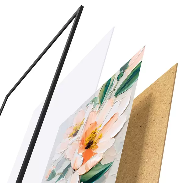 Plagát sa skladá z rámu, plexiskla, vytlačeného obrazu a podkladu z drevotriesky. Plagát možno okamžite zavesiť na stenu vďaka úchytom na zadnej strane.