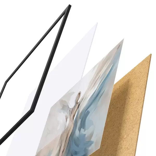 Plagát sa skladá z rámu, plexiskla, vytlačeného obrazu a podkladu z drevotriesky. Plagát možno okamžite zavesiť na stenu vďaka úchytom na zadnej strane.