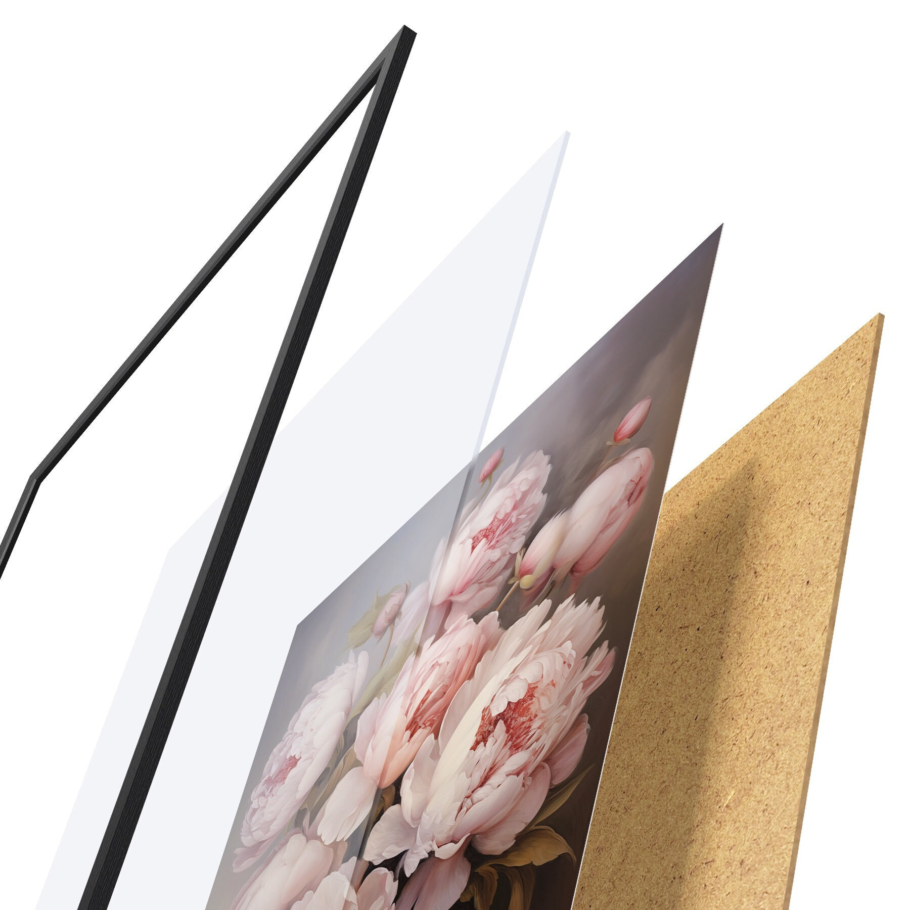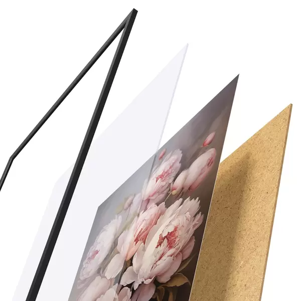 Plagát sa skladá z rámu, plexiskla, vytlačeného obrazu a podkladu z drevotriesky. Plagát možno okamžite zavesiť na stenu vďaka úchytom na zadnej strane.