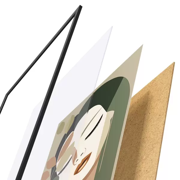 Plagát sa skladá z rámu, plexiskla, vytlačeného obrazu a podkladu z drevotriesky. Plagát možno okamžite zavesiť na stenu vďaka úchytom na zadnej strane.