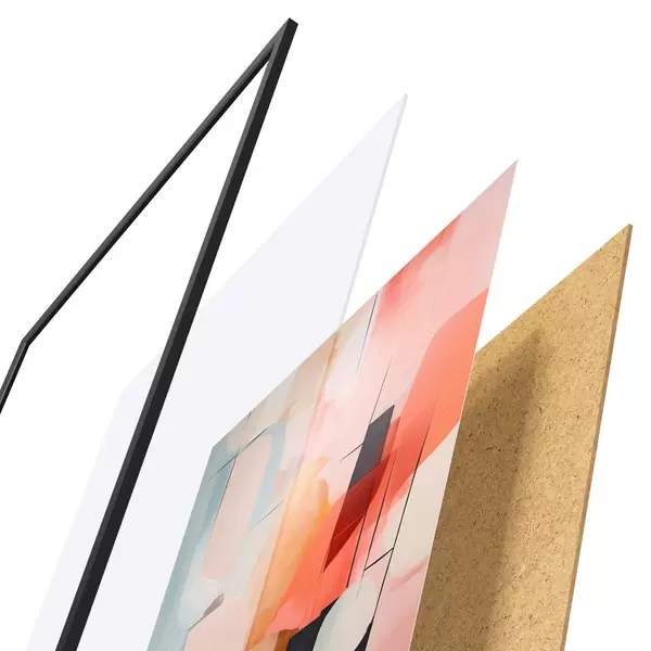 Plagát sa skladá z rámu, plexiskla, vytlačeného obrazu a podkladu z drevotriesky. Plagát možno okamžite zavesiť na stenu vďaka úchytom na zadnej strane.
