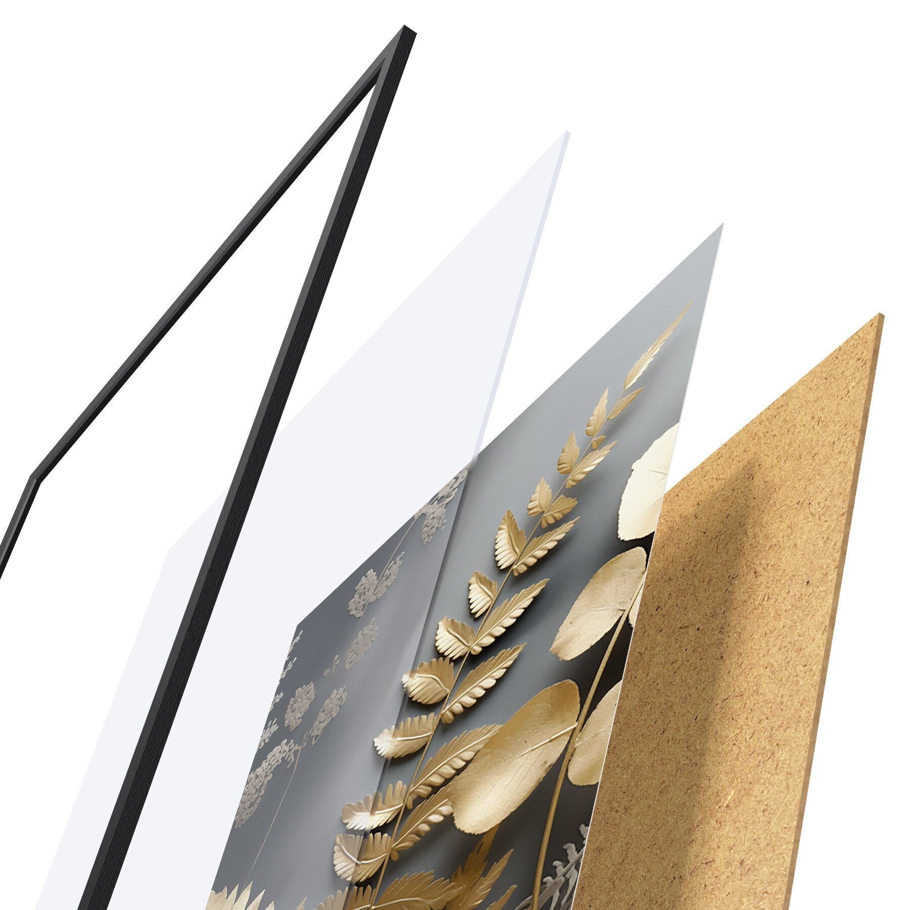 Plagát sa skladá z rámu, plexiskla, vytlačeného obrazu a podkladu z drevotriesky. Plagát možno okamžite zavesiť na stenu vďaka úchytom na zadnej strane.
