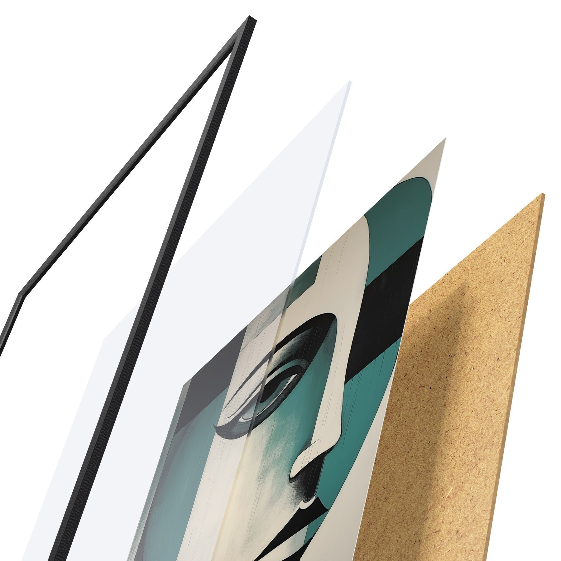Plagát sa skladá z rámu, plexiskla, vytlačeného obrazu a podkladu z drevotriesky. Plagát možno okamžite zavesiť na stenu vďaka úchytom na zadnej strane.