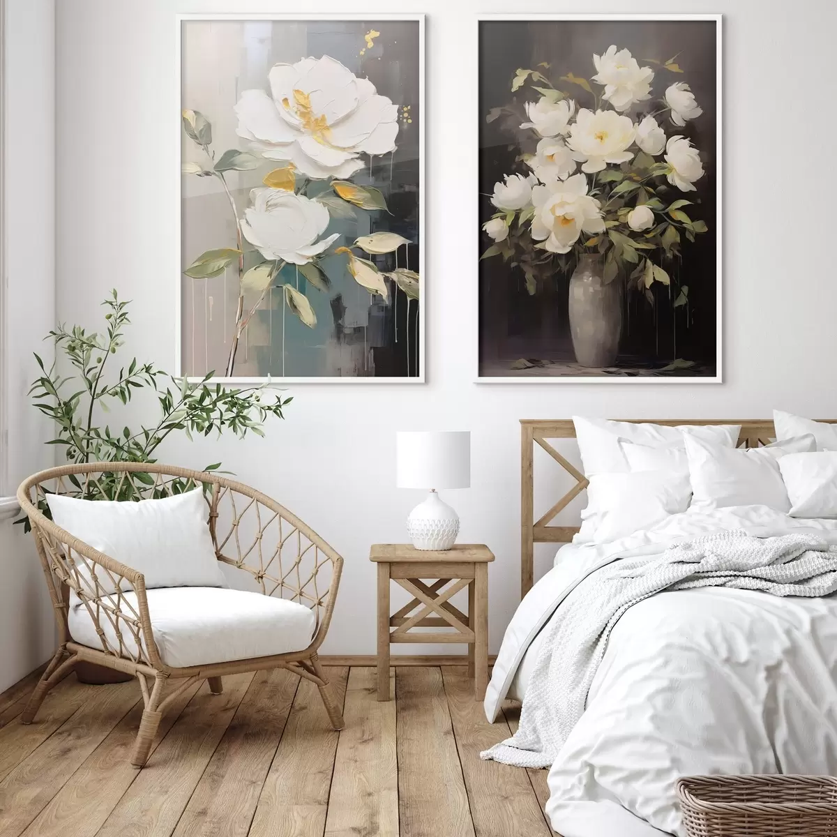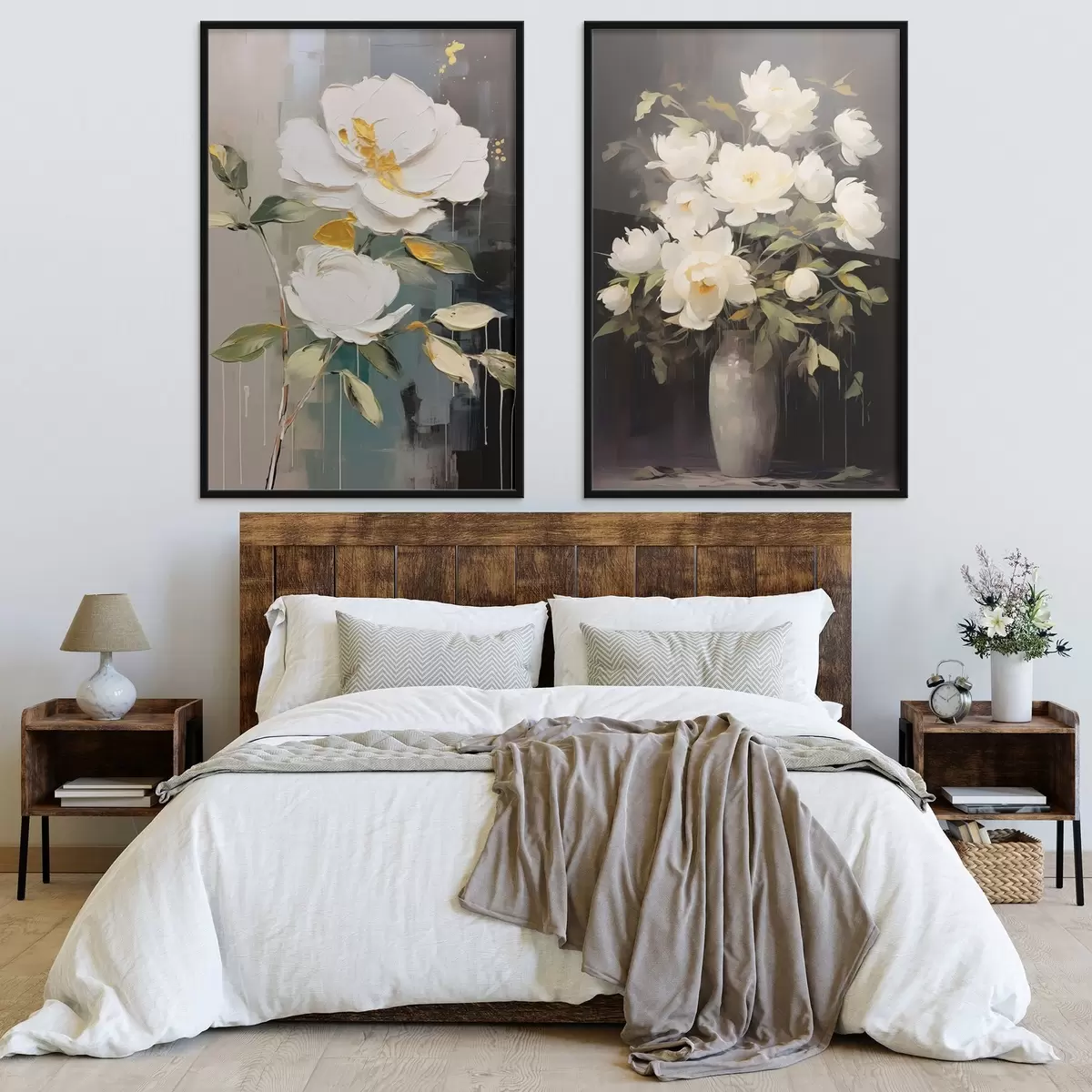 Plagáty Biele pivonky na tmavom pozadí: dekoratívne zloženie Nr d00634