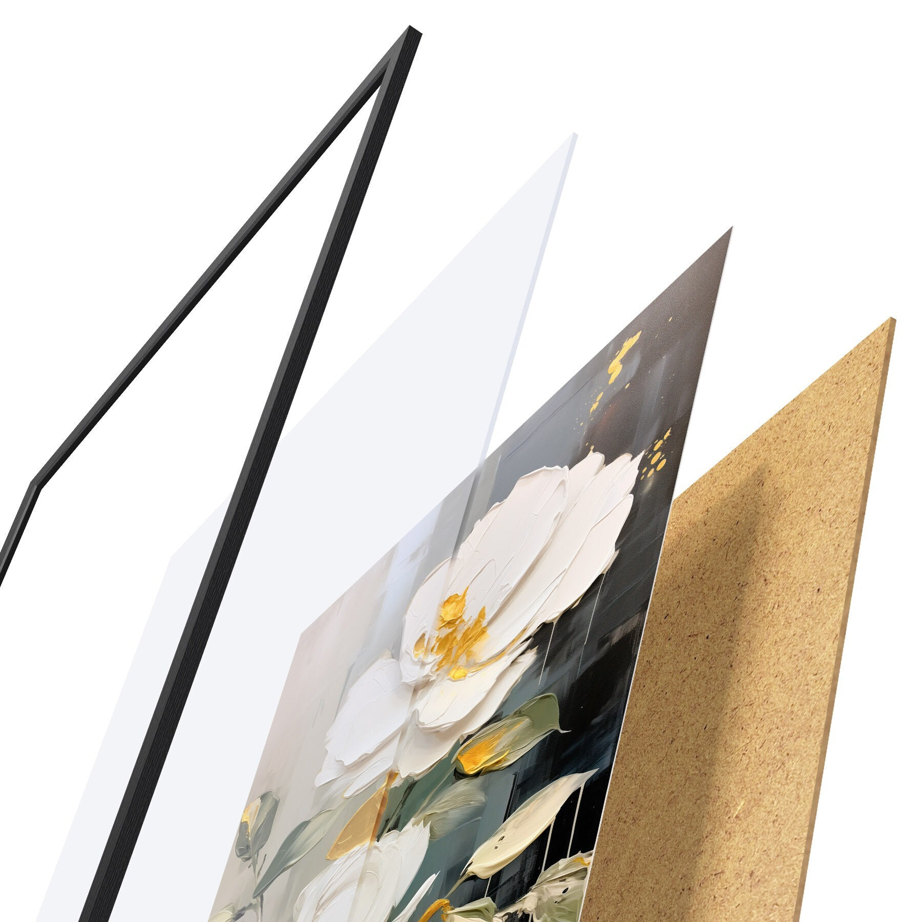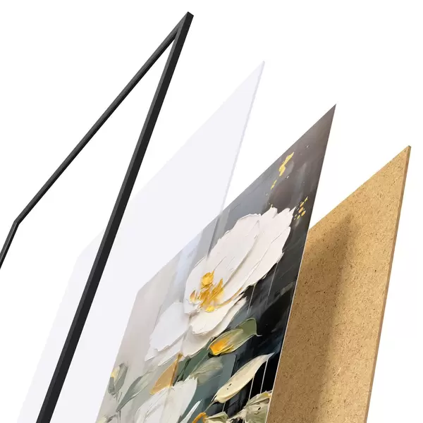 Plagát sa skladá z rámu, plexiskla, vytlačeného obrazu a podkladu z drevotriesky. Plagát možno okamžite zavesiť na stenu vďaka úchytom na zadnej strane.