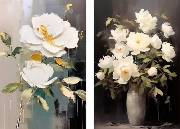 Plagáty Biele pivonky na tmavom pozadí: dekoratívne zloženie Nr d00634