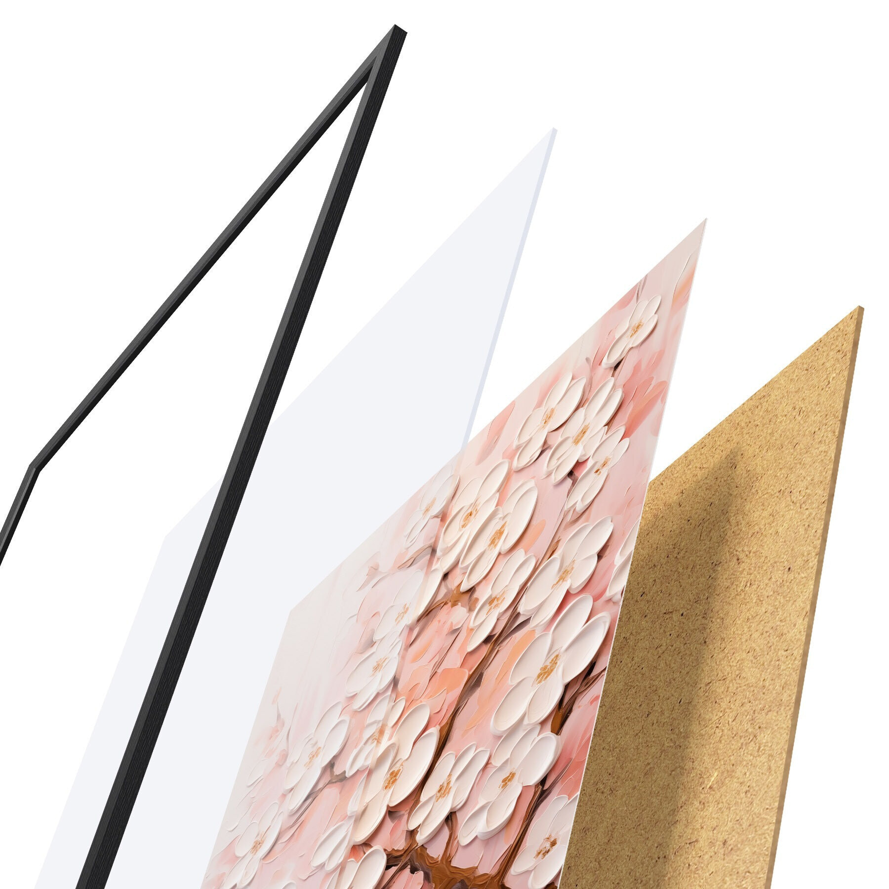 Plagát sa skladá z rámu, plexiskla, vytlačeného obrazu a podkladu z drevotriesky. Plagát možno okamžite zavesiť na stenu vďaka úchytom na zadnej strane.