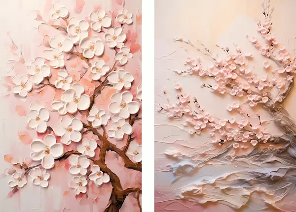 Plagáty Kvitnúca sakura: kompozícia v štýle impasto Nr d00638