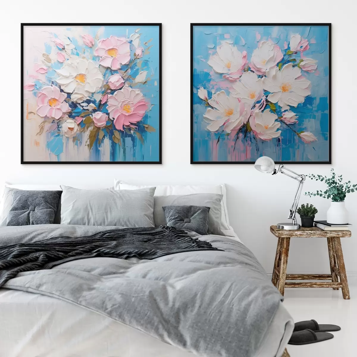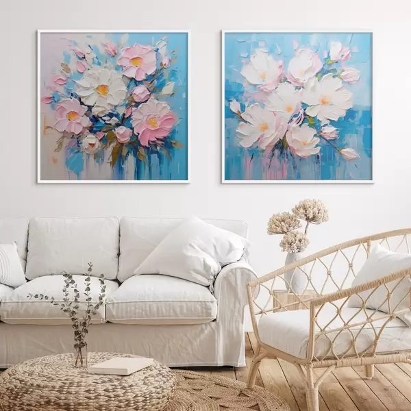 Plagáty Abstraktné kvety: dekoratívna kompozícia v ružových a modrých tónoch Nr d00643