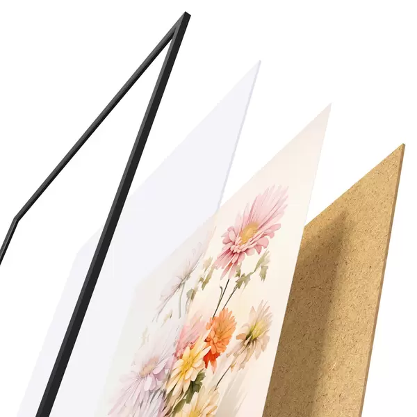 Plagát sa skladá z rámu, plexiskla, vytlačeného obrazu a podkladu z drevotriesky. Plagát možno okamžite zavesiť na stenu vďaka úchytom na zadnej strane.