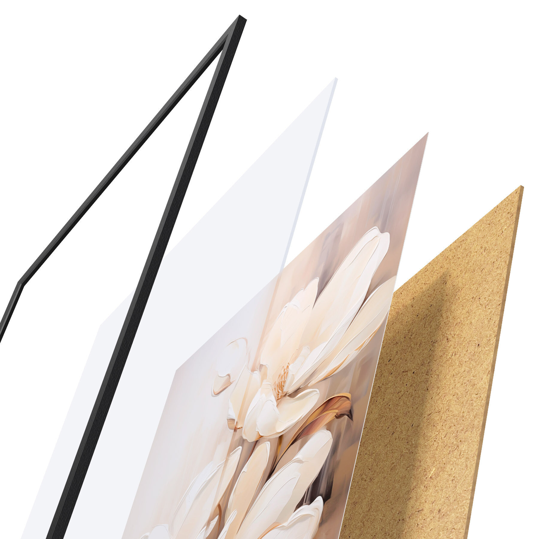 Plagát sa skladá z rámu, plexiskla, vytlačeného obrazu a podkladu z drevotriesky. Plagát možno okamžite zavesiť na stenu vďaka úchytom na zadnej strane.