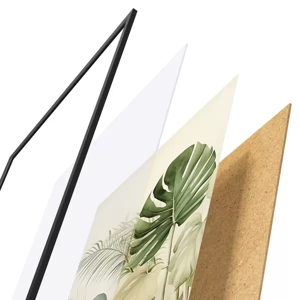 Plagát sa skladá z rámu, plexiskla, vytlačeného obrazu a podkladu z drevotriesky. Plagát možno okamžite zavesiť na stenu vďaka úchytom na zadnej strane.