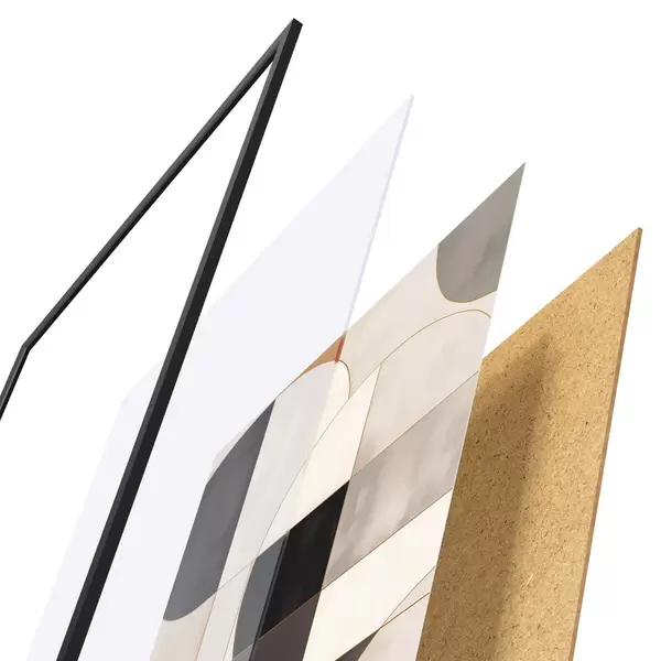 Plagát sa skladá z rámu, plexiskla, vytlačeného obrazu a podkladu z drevotriesky. Plagát možno okamžite zavesiť na stenu vďaka úchytom na zadnej strane.