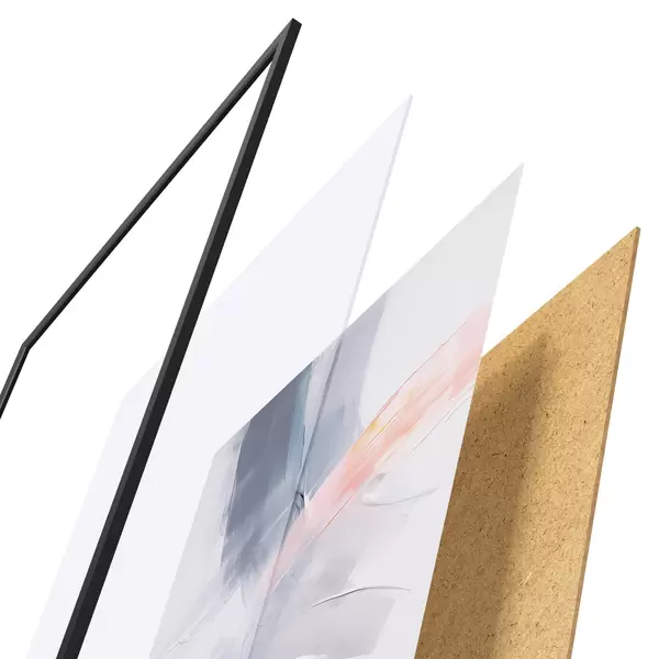 Plagát sa skladá z rámu, plexiskla, vytlačeného obrazu a podkladu z drevotriesky. Plagát možno okamžite zavesiť na stenu vďaka úchytom na zadnej strane.