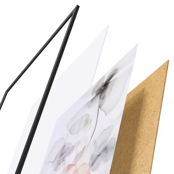 Plagát sa skladá z rámu, plexiskla, vytlačeného obrazu a podkladu z drevotriesky. Plagát možno okamžite zavesiť na stenu vďaka úchytom na zadnej strane.
