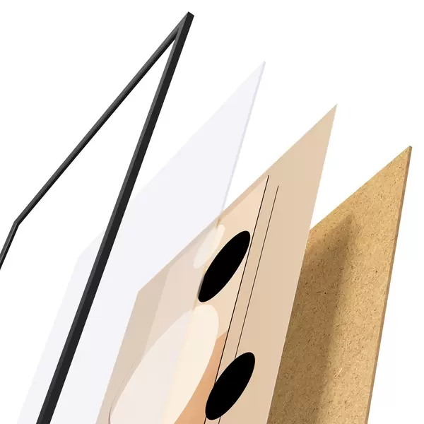 Plagát sa skladá z rámu, plexiskla, vytlačeného obrazu a podkladu z drevotriesky. Plagát možno okamžite zavesiť na stenu vďaka úchytom na zadnej strane.