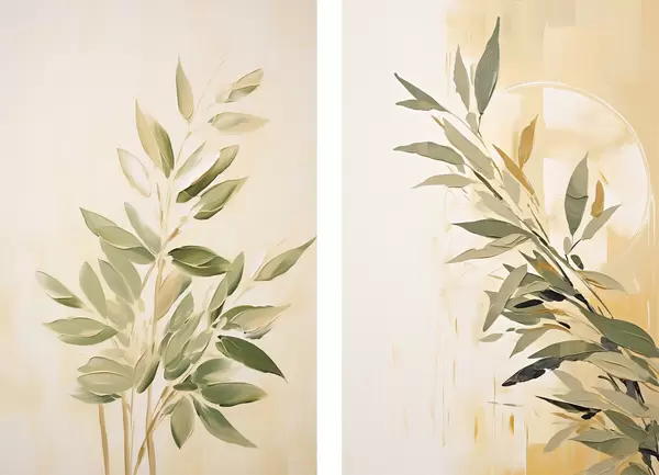 Plagáty Botanická vetva so zelenými listami na teplom pozadí Nr d00686