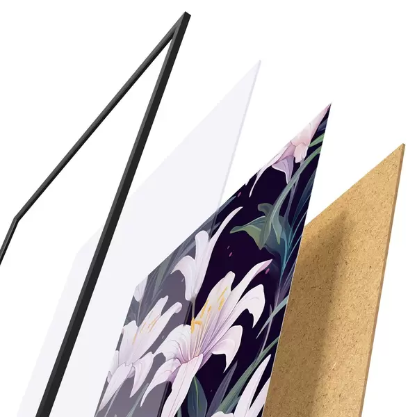 Plagát sa skladá z rámu, plexiskla, vytlačeného obrazu a podkladu z drevotriesky. Plagát možno okamžite zavesiť na stenu vďaka úchytom na zadnej strane.