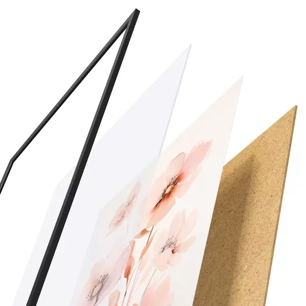 Plagát sa skladá z rámu, plexiskla, vytlačeného obrazu a podkladu z drevotriesky. Plagát možno okamžite zavesiť na stenu vďaka úchytom na zadnej strane.