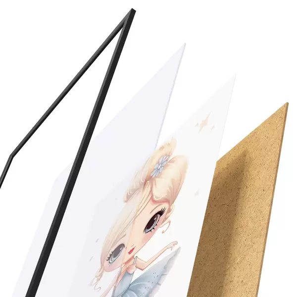 Plagát sa skladá z rámu, plexiskla, vytlačeného obrazu a podkladu z drevotriesky. Plagát možno okamžite zavesiť na stenu vďaka úchytom na zadnej strane.