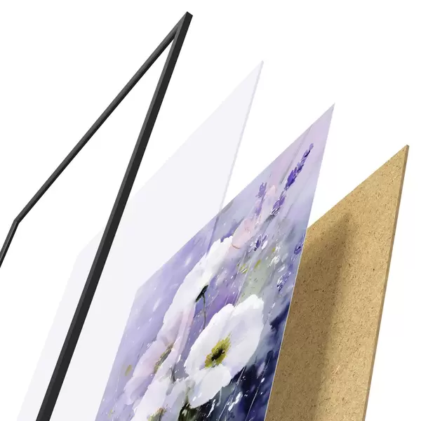 Plagát sa skladá z rámu, plexiskla, vytlačeného obrazu a podkladu z drevotriesky. Plagát možno okamžite zavesiť na stenu vďaka úchytom na zadnej strane.