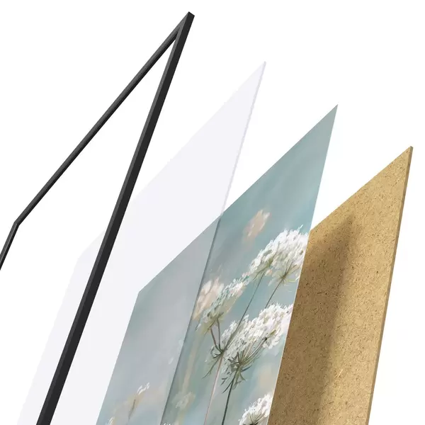 Plagát sa skladá z rámu, plexiskla, vytlačeného obrazu a podkladu z drevotriesky. Plagát možno okamžite zavesiť na stenu vďaka úchytom na zadnej strane.
