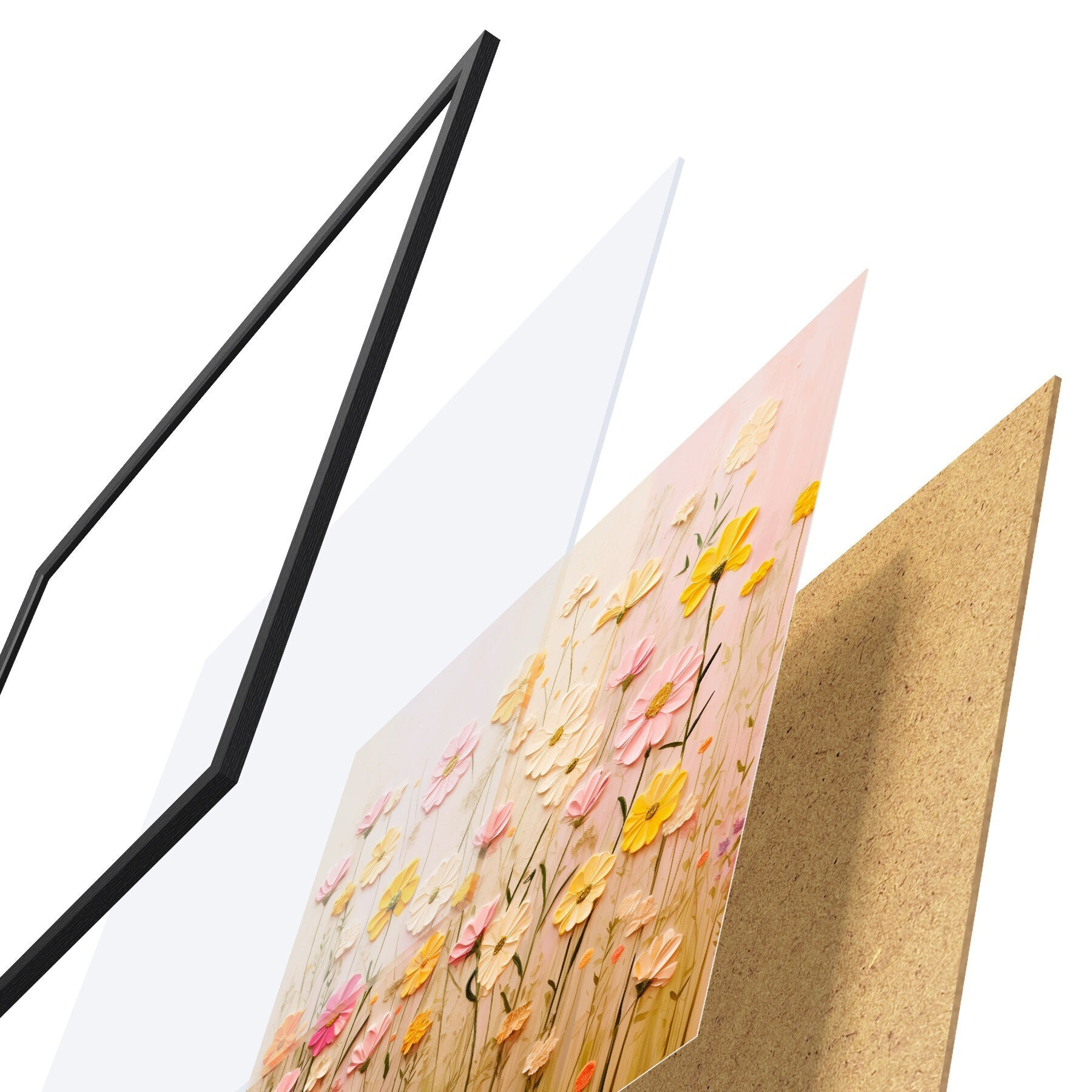 Plagát sa skladá z rámu, plexiskla, vytlačeného obrazu a podkladu z drevotriesky. Plagát možno okamžite zavesiť na stenu vďaka úchytom na zadnej strane.