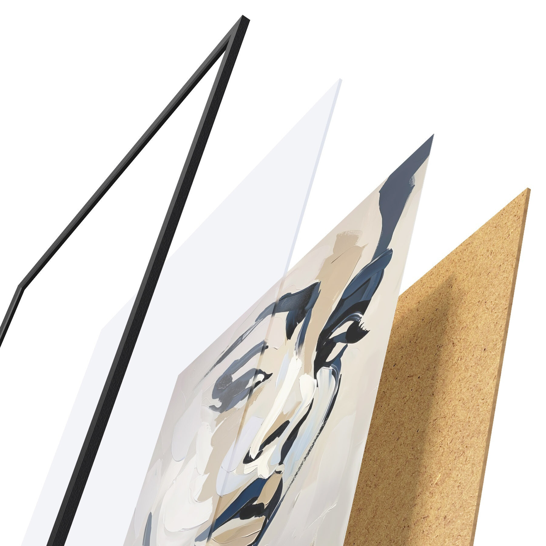 Plagát sa skladá z rámu, plexiskla, vytlačeného obrazu a podkladu z drevotriesky. Plagát možno okamžite zavesiť na stenu vďaka úchytom na zadnej strane.