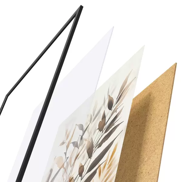 Plagát sa skladá z rámu, plexiskla, vytlačeného obrazu a podkladu z drevotriesky. Plagát možno okamžite zavesiť na stenu vďaka úchytom na zadnej strane.
