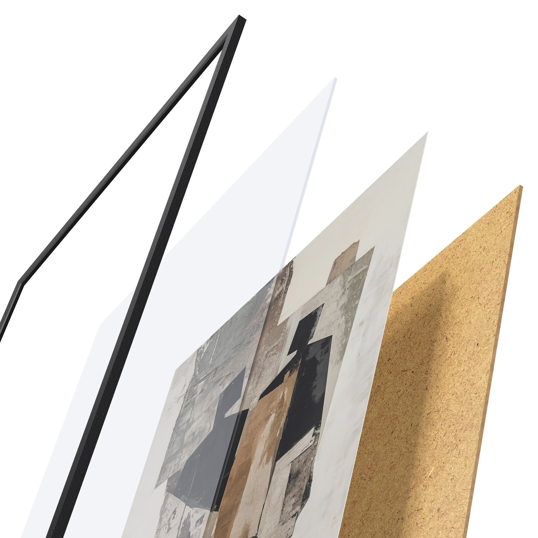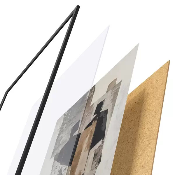Plagát sa skladá z rámu, plexiskla, vytlačeného obrazu a podkladu z drevotriesky. Plagát možno okamžite zavesiť na stenu vďaka úchytom na zadnej strane.