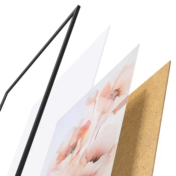 Plagát sa skladá z rámu, plexiskla, vytlačeného obrazu a podkladu z drevotriesky. Plagát možno okamžite zavesiť na stenu vďaka úchytom na zadnej strane.