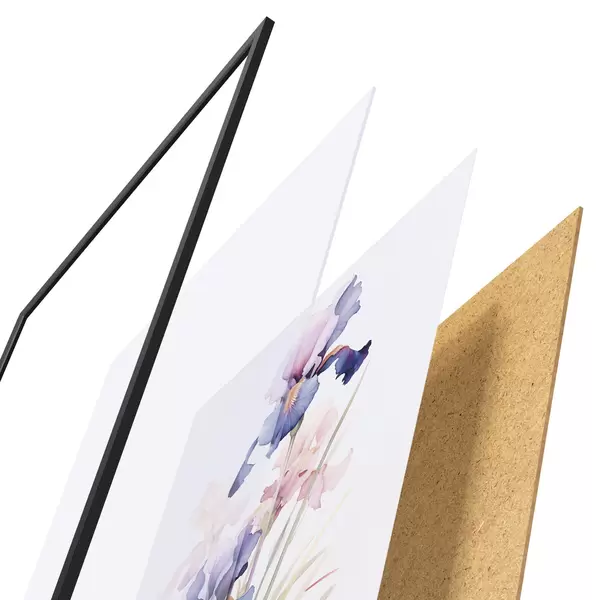 Plagát sa skladá z rámu, plexiskla, vytlačeného obrazu a podkladu z drevotriesky. Plagát možno okamžite zavesiť na stenu vďaka úchytom na zadnej strane.