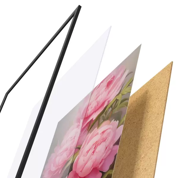 Plagát sa skladá z rámu, plexiskla, vytlačeného obrazu a podkladu z drevotriesky. Plagát možno okamžite zavesiť na stenu vďaka úchytom na zadnej strane.