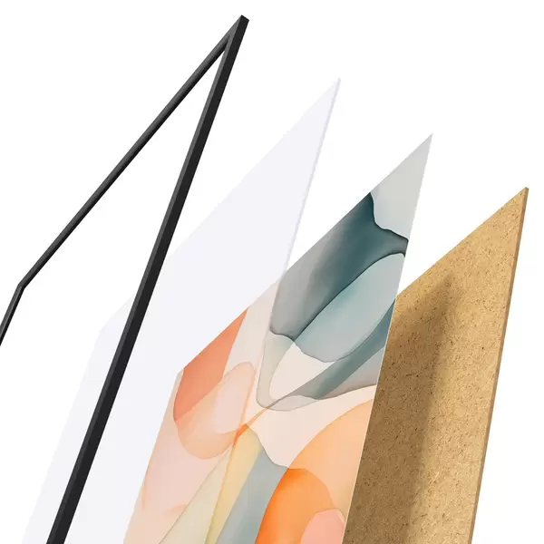 Plagát sa skladá z rámu, plexiskla, vytlačeného obrazu a podkladu z drevotriesky. Plagát možno okamžite zavesiť na stenu vďaka úchytom na zadnej strane.