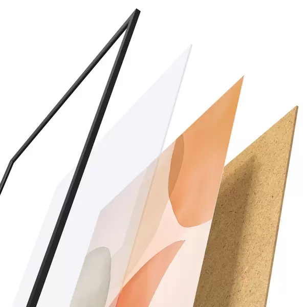 Plagát sa skladá z rámu, plexiskla, vytlačeného obrazu a podkladu z drevotriesky. Plagát možno okamžite zavesiť na stenu vďaka úchytom na zadnej strane.