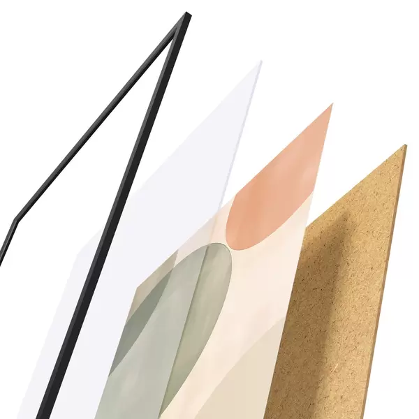 Plagát sa skladá z rámu, plexiskla, vytlačeného obrazu a podkladu z drevotriesky. Plagát možno okamžite zavesiť na stenu vďaka úchytom na zadnej strane.