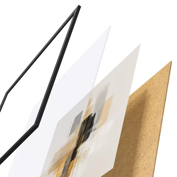 Plagát sa skladá z rámu, plexiskla, vytlačeného obrazu a podkladu z drevotriesky. Plagát možno okamžite zavesiť na stenu vďaka úchytom na zadnej strane.