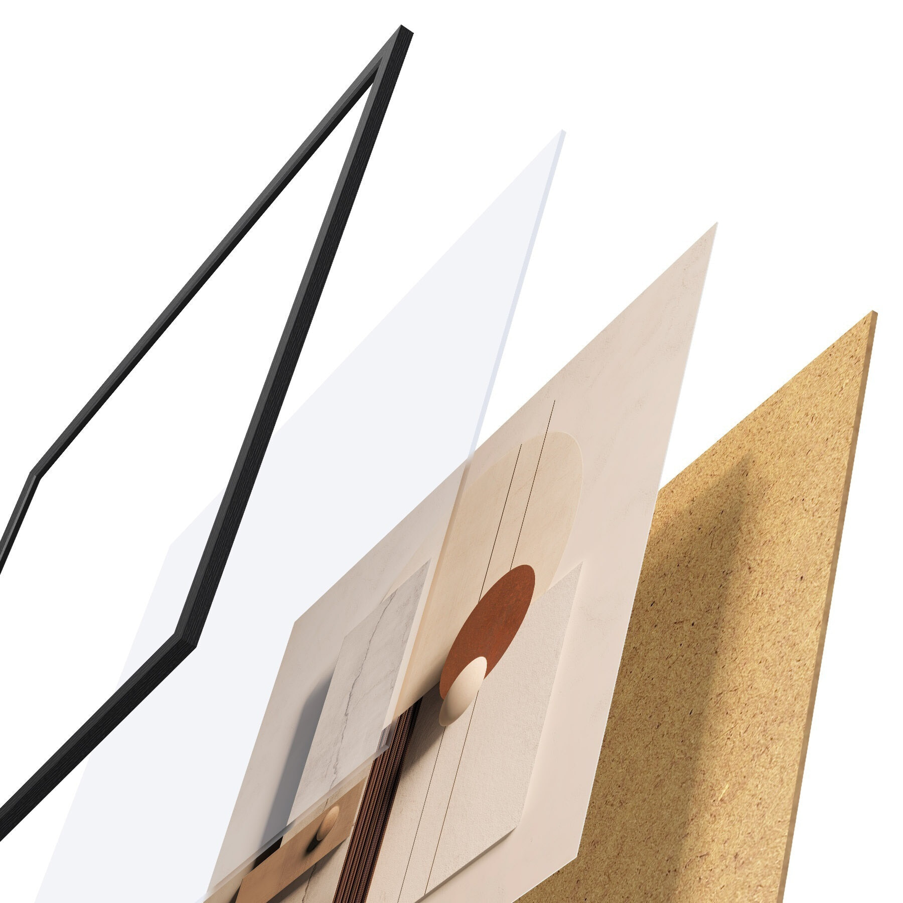Plagát sa skladá z rámu, plexiskla, vytlačeného obrazu a podkladu z drevotriesky. Plagát možno okamžite zavesiť na stenu vďaka úchytom na zadnej strane.