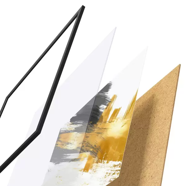 Plagát sa skladá z rámu, plexiskla, vytlačeného obrazu a podkladu z drevotriesky. Plagát možno okamžite zavesiť na stenu vďaka úchytom na zadnej strane.