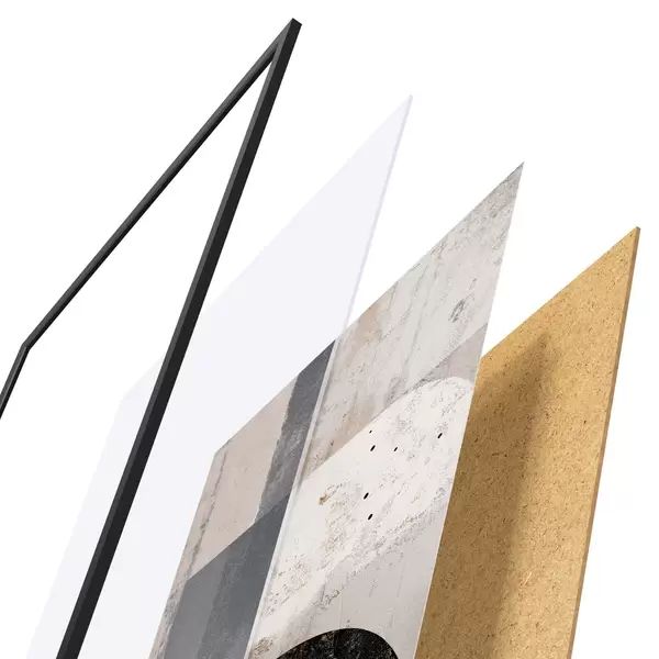Plagát sa skladá z rámu, plexiskla, vytlačeného obrazu a podkladu z drevotriesky. Plagát možno okamžite zavesiť na stenu vďaka úchytom na zadnej strane.