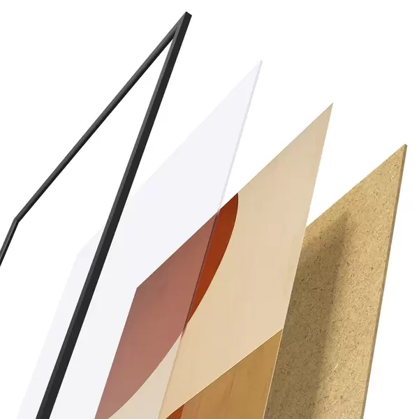 Plagát sa skladá z rámu, plexiskla, vytlačeného obrazu a podkladu z drevotriesky. Plagát možno okamžite zavesiť na stenu vďaka úchytom na zadnej strane.