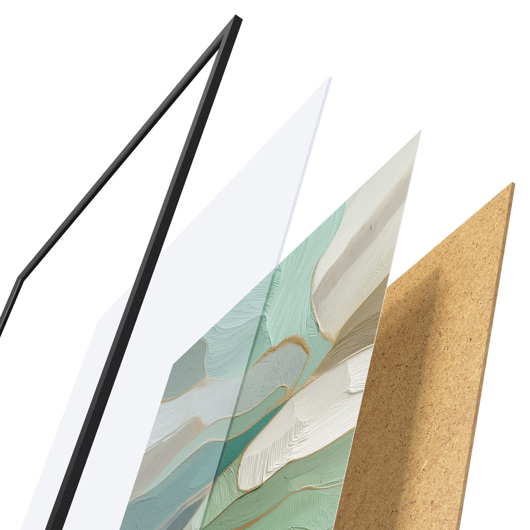 Plagát sa skladá z rámu, plexiskla, vytlačeného obrazu a podkladu z drevotriesky. Plagát možno okamžite zavesiť na stenu vďaka úchytom na zadnej strane.