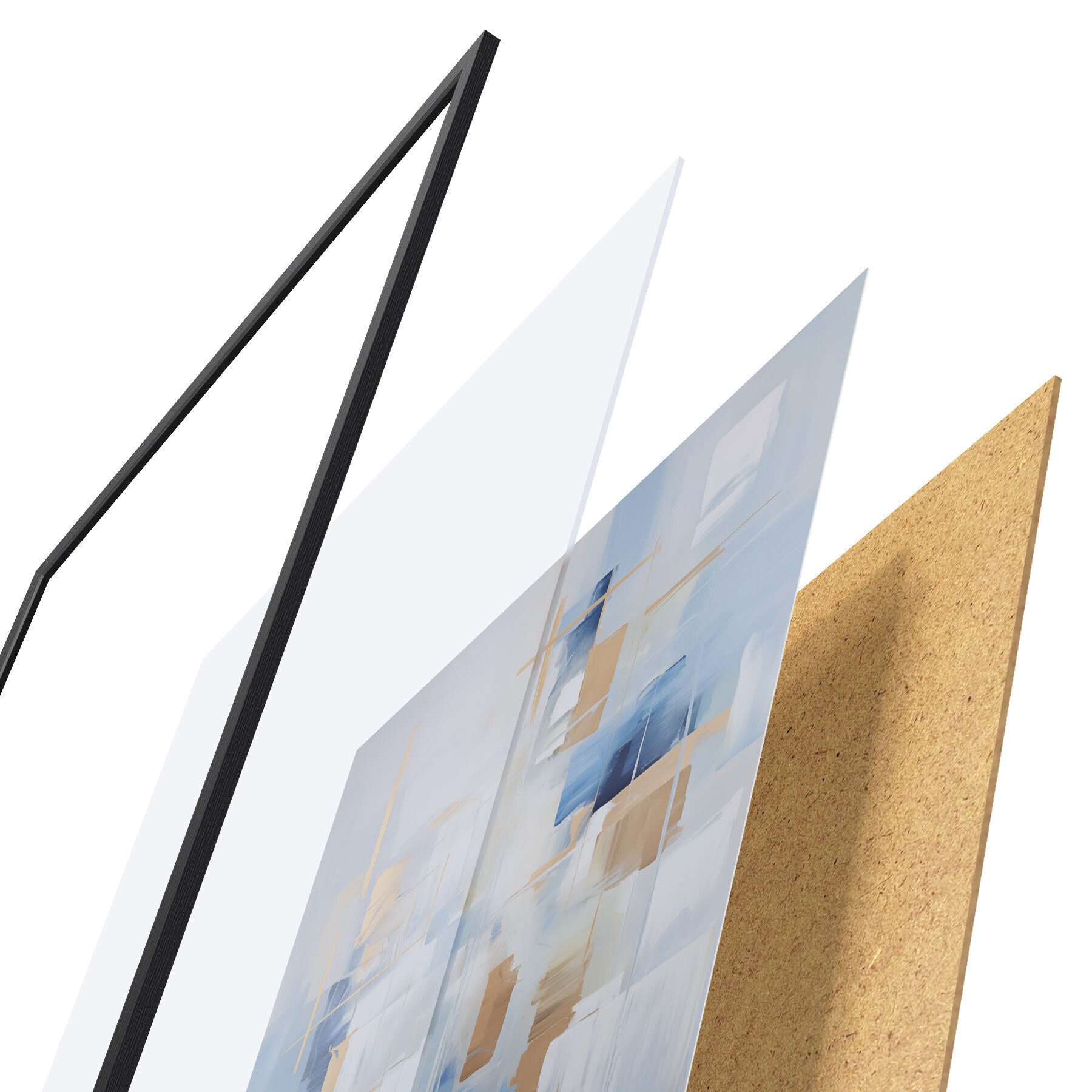 Plagát sa skladá z rámu, plexiskla, vytlačeného obrazu a podkladu z drevotriesky. Plagát možno okamžite zavesiť na stenu vďaka úchytom na zadnej strane.