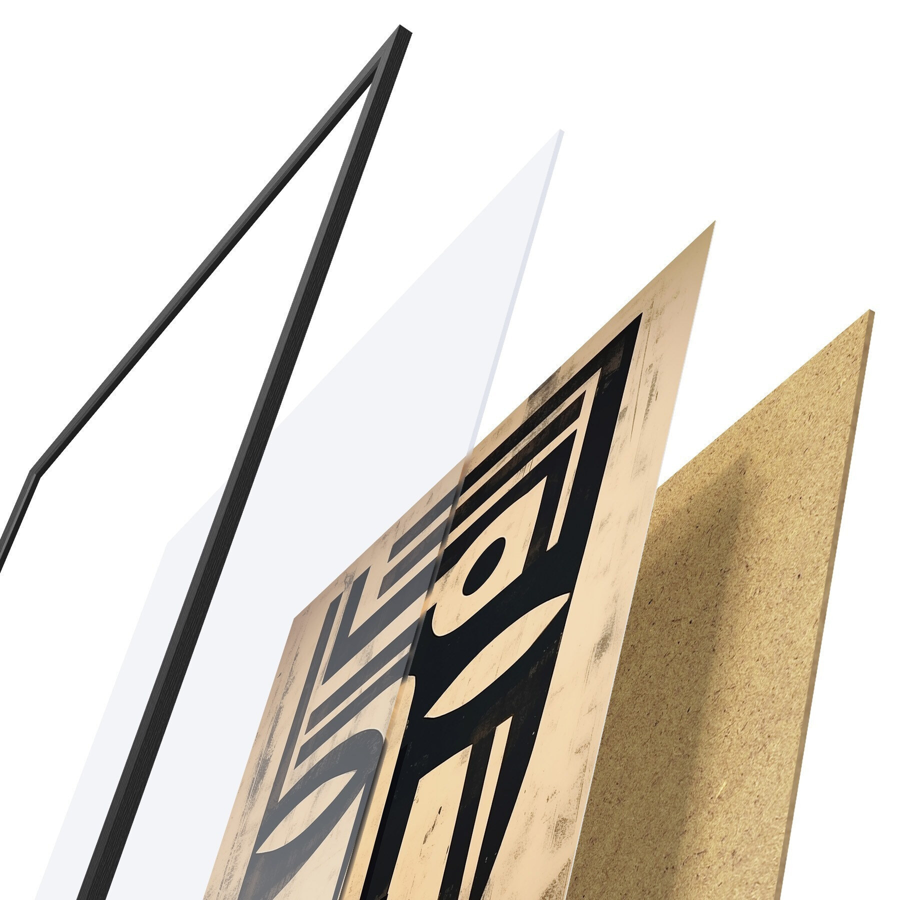 Plagát sa skladá z rámu, plexiskla, vytlačeného obrazu a podkladu z drevotriesky. Plagát možno okamžite zavesiť na stenu vďaka úchytom na zadnej strane.