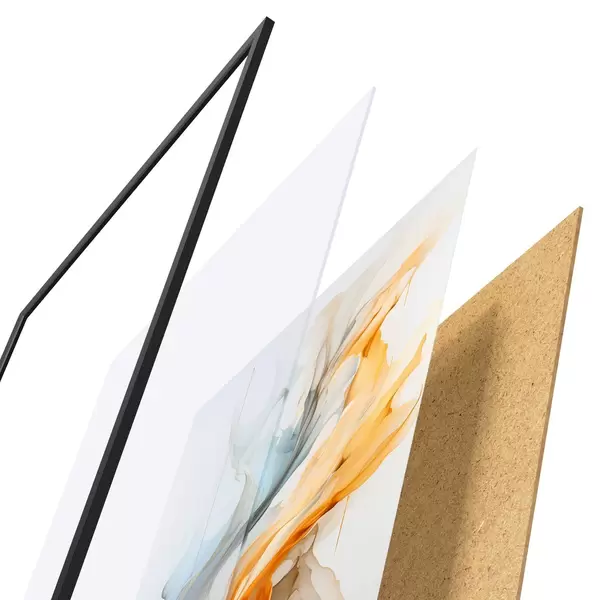 Plagát sa skladá z rámu, plexiskla, vytlačeného obrazu a podkladu z drevotriesky. Plagát možno okamžite zavesiť na stenu vďaka úchytom na zadnej strane.