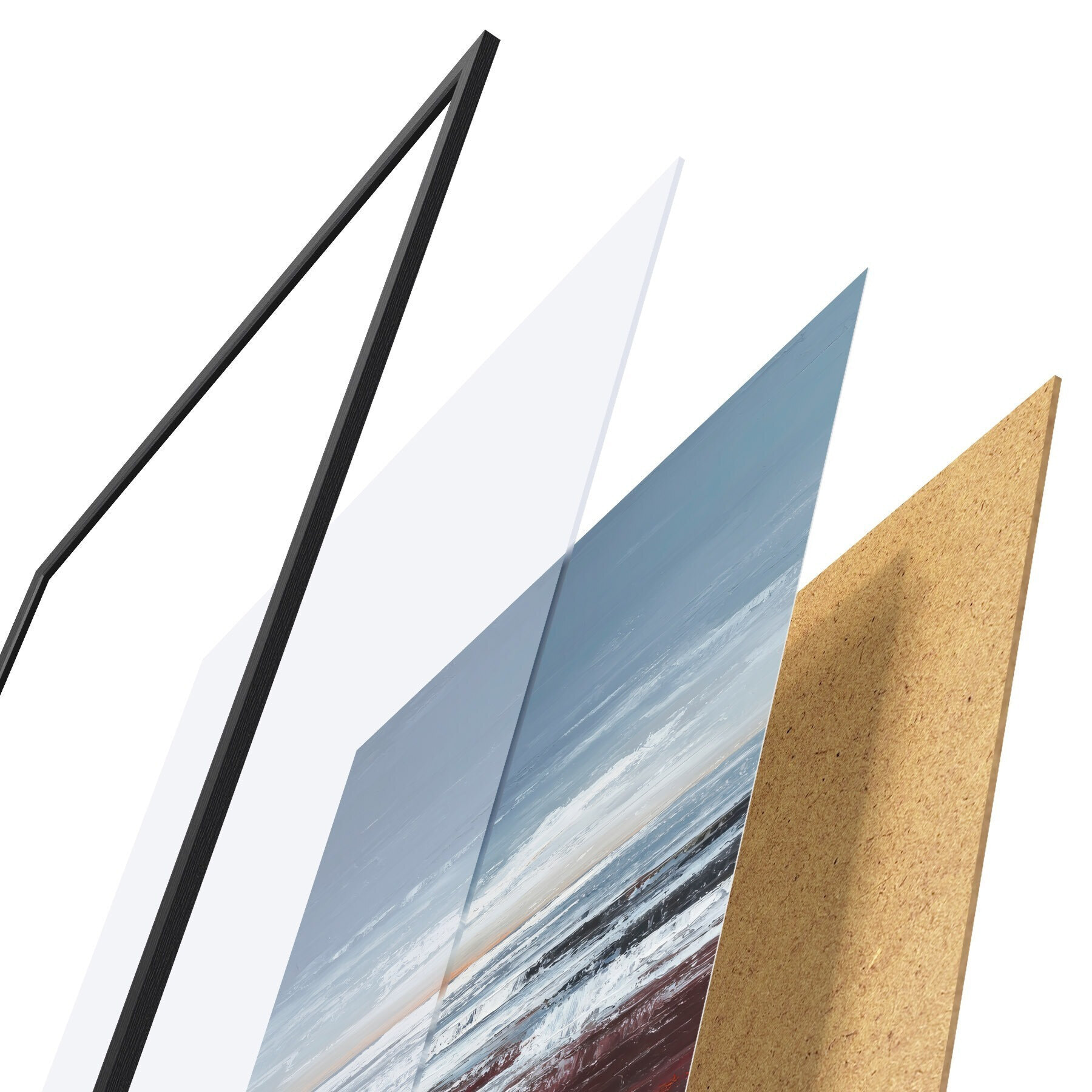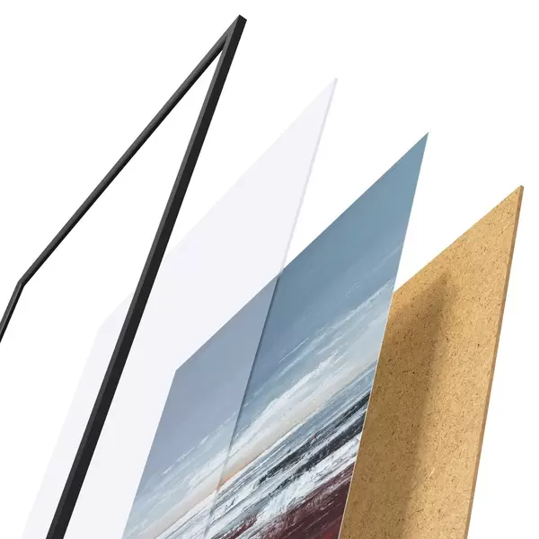Plagát sa skladá z rámu, plexiskla, vytlačeného obrazu a podkladu z drevotriesky. Plagát možno okamžite zavesiť na stenu vďaka úchytom na zadnej strane.
