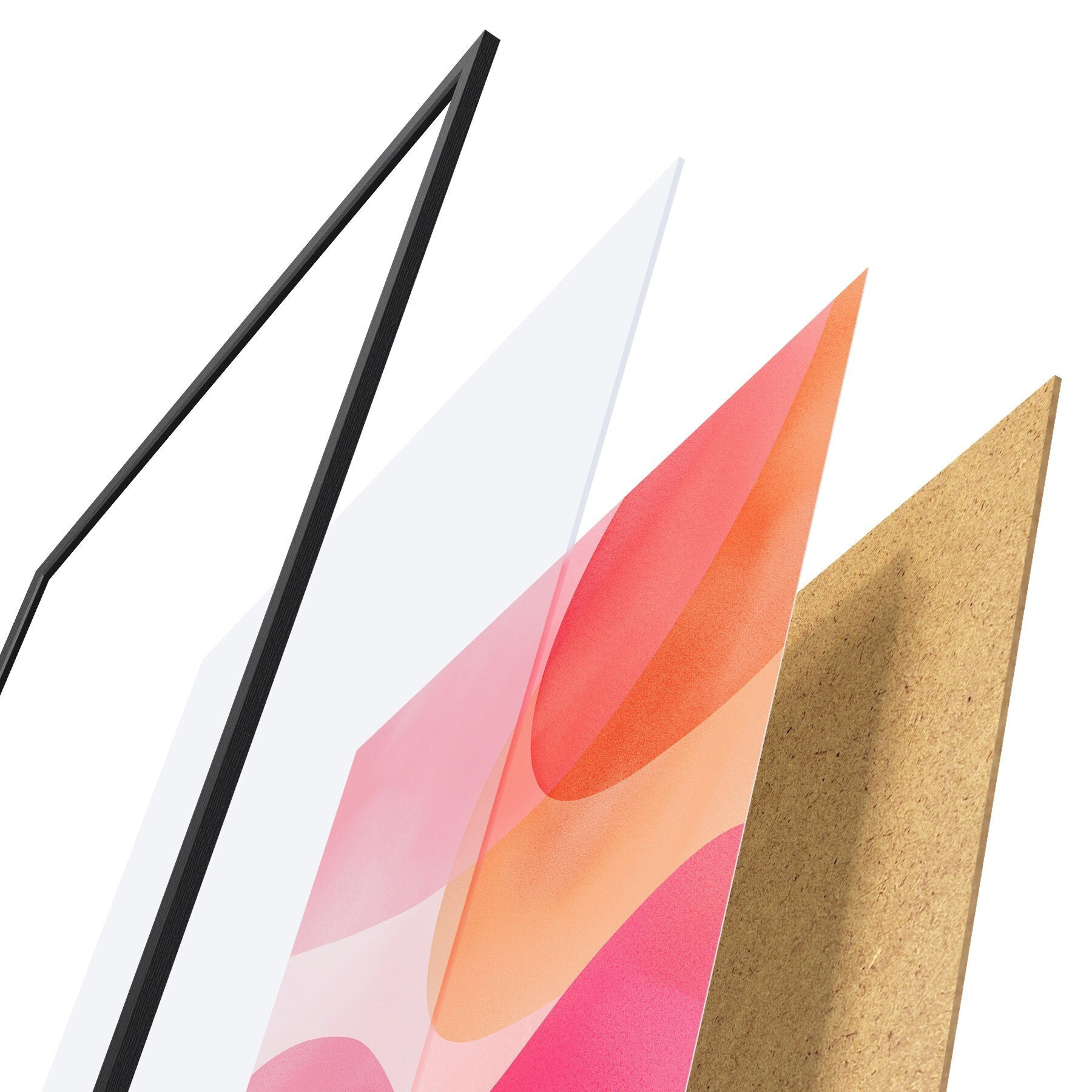 Plagát sa skladá z rámu, plexiskla, vytlačeného obrazu a podkladu z drevotriesky. Plagát možno okamžite zavesiť na stenu vďaka úchytom na zadnej strane.